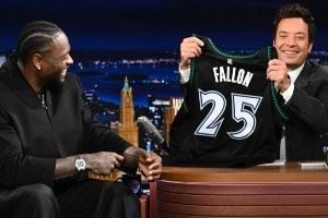 造型打几分?兰德尔打纽约客场期间 顺道参加吉米·法伦今夜秀