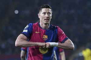 体育资讯11月10日讯 在本轮西甲联赛的一场比赛中,巴萨客场对阵塞尔塔,上半场巴萨前锋莱万多夫斯基打进两球。